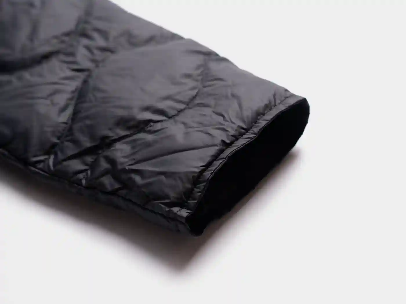 超軽量ファブリックと高品質なフレンチダックダウンを組み合わせることで軽い着心地と適度な保温性を兼ね備えたライトウエイトダウンジャケットです。フロントはVネックとスナップボタン仕様になったカーディガンタイプで、ダウンの充填量を抑えることで外気温に合わせてアウターとしてもインナーとしても着用できる3シーズン対応です。収納力がある大きめのパッチポケットを備えており、ミリタリーライナーを彷彿とさせるオニオンキルトステッチが特徴です。SIZE
