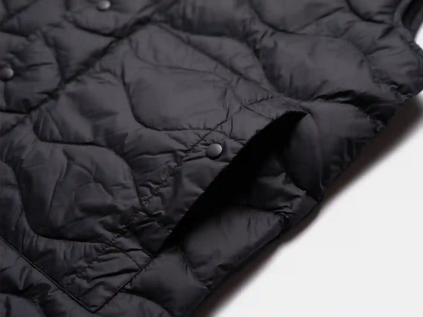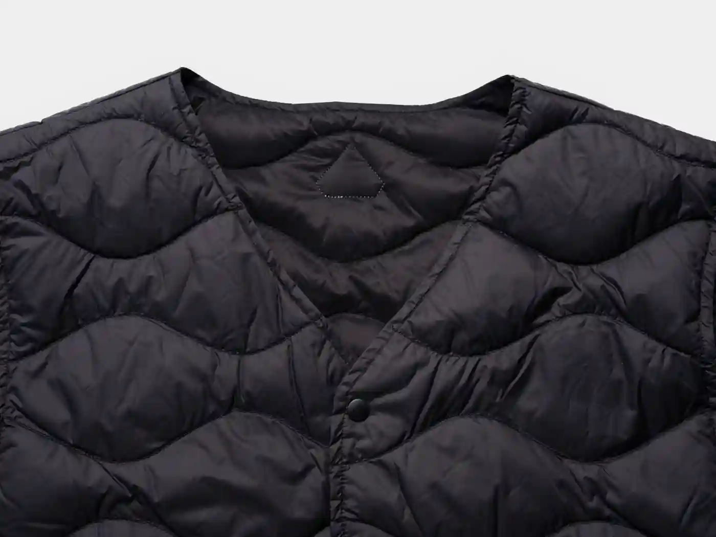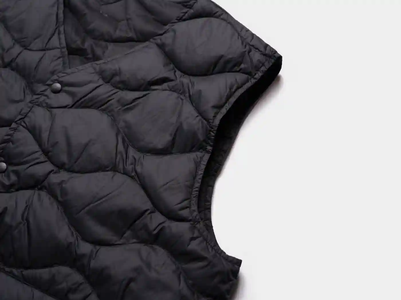 超軽量ファブリックと高品質なフレンチダックダウンを組み合わせることで軽い着心地と適度な保温性を兼ね備えたライトウエイトベストです。フロントはVネックとスナップボタン仕様で、ダウンの充填量を抑えることで外気温に合わせてアウターとしてもインナーとしても着用できる3シーズン対応です。収納力がある大きめのパッチポケットを備えており、ミリタリーライナーを彷彿とさせるオニオンキルトステッチが特徴です。SIZE