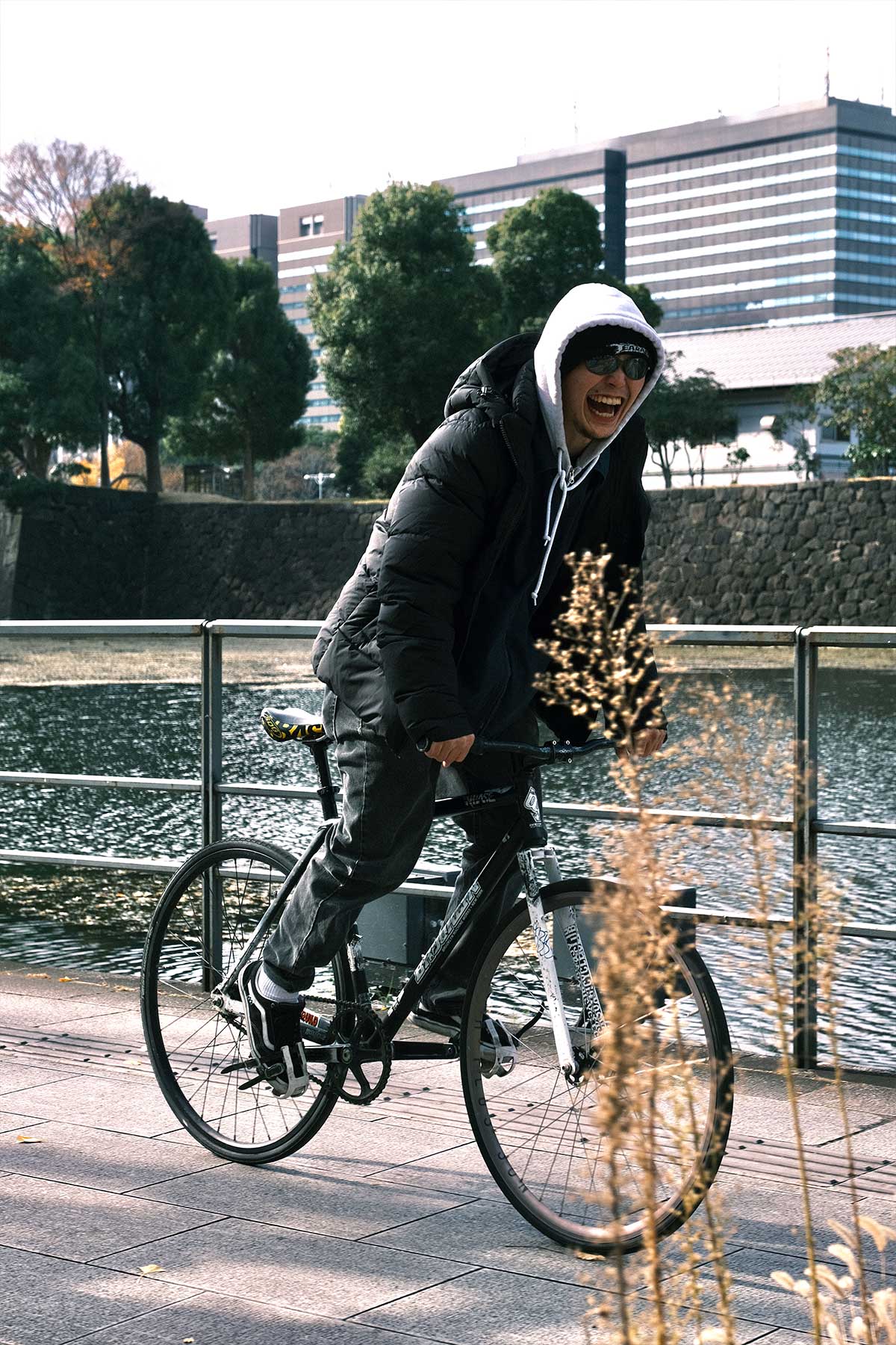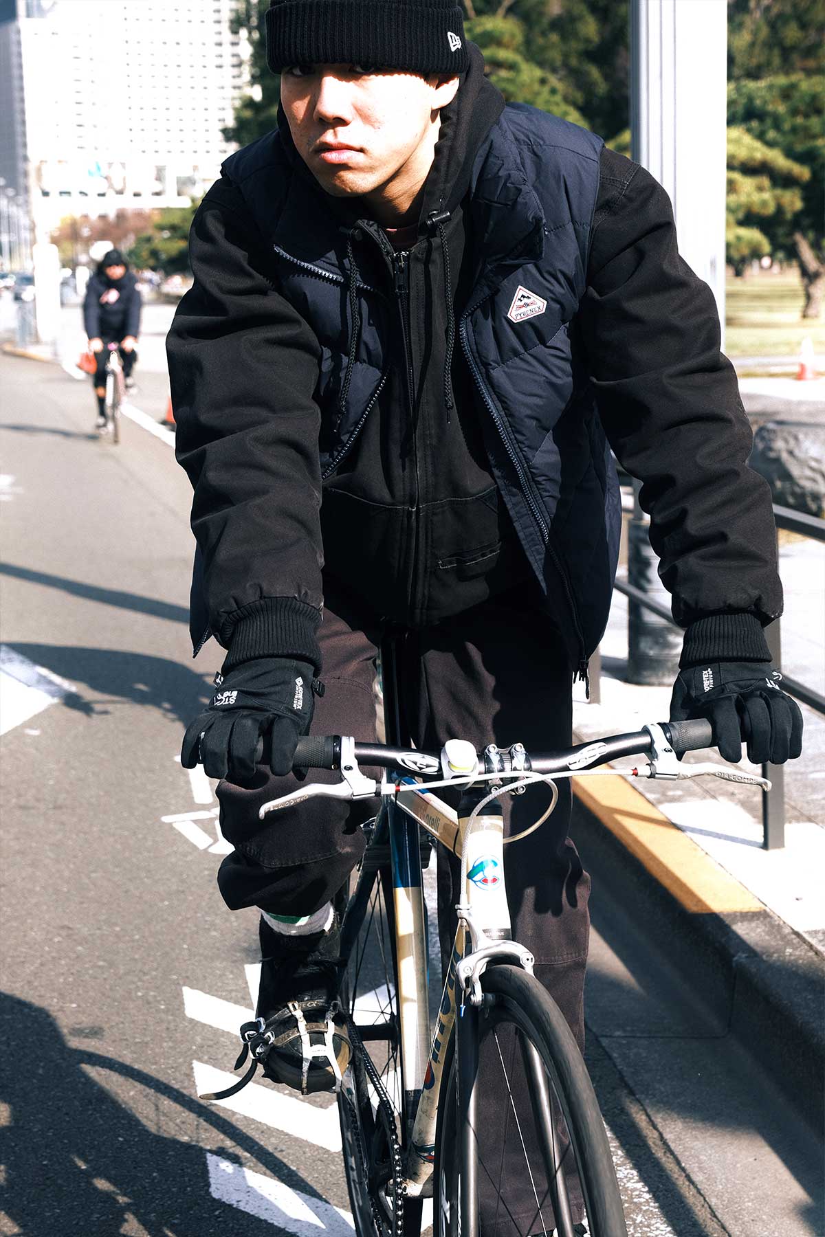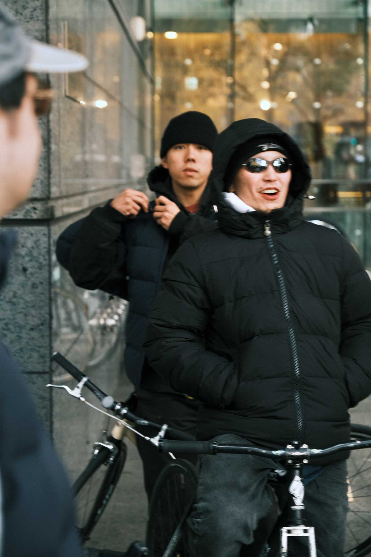 当日は、ロードバイク、マウンテンバイク、BMX など多彩なスタイルを持つ参加者が、PYRENEXのアウターを着用し、東京のさまざまなスポットでフォトセッションを実施。