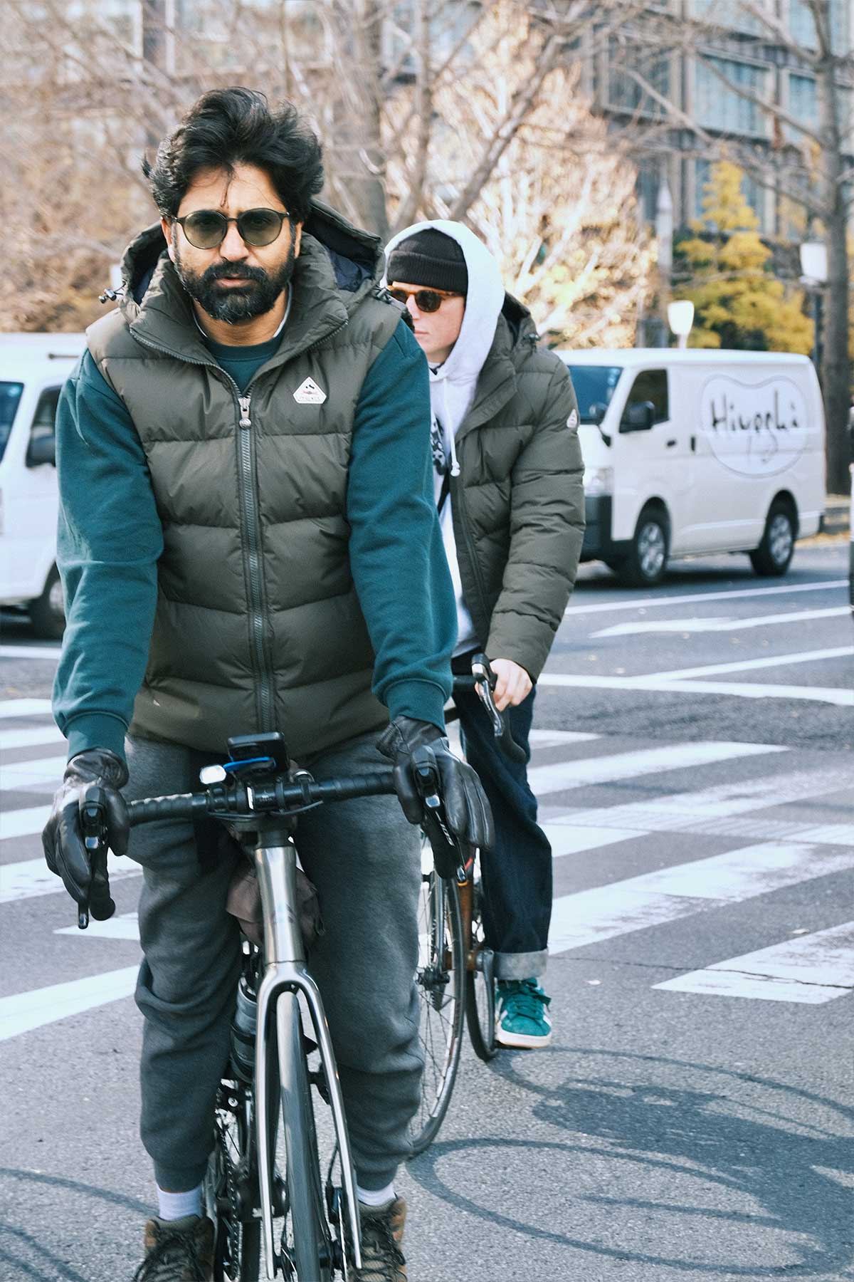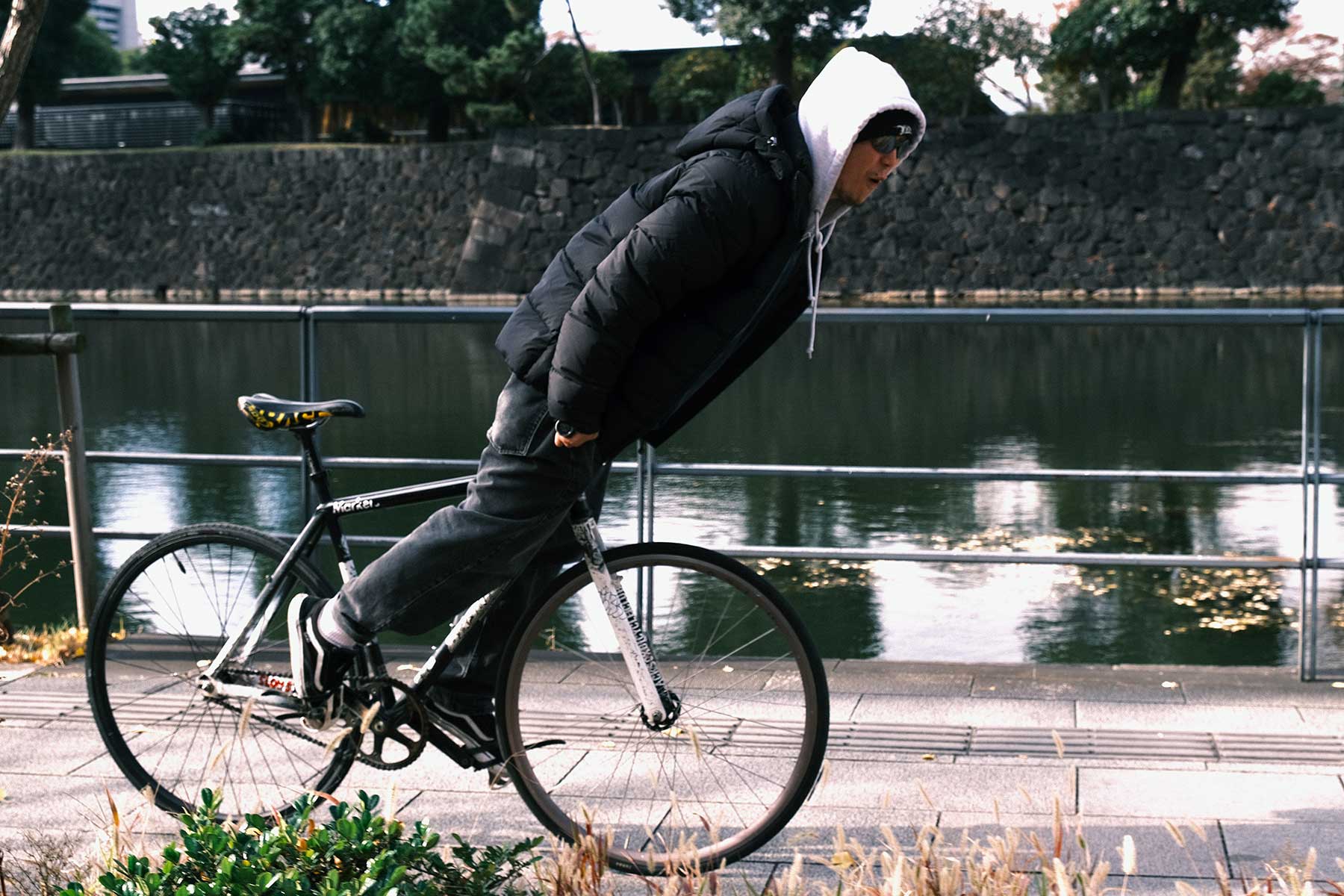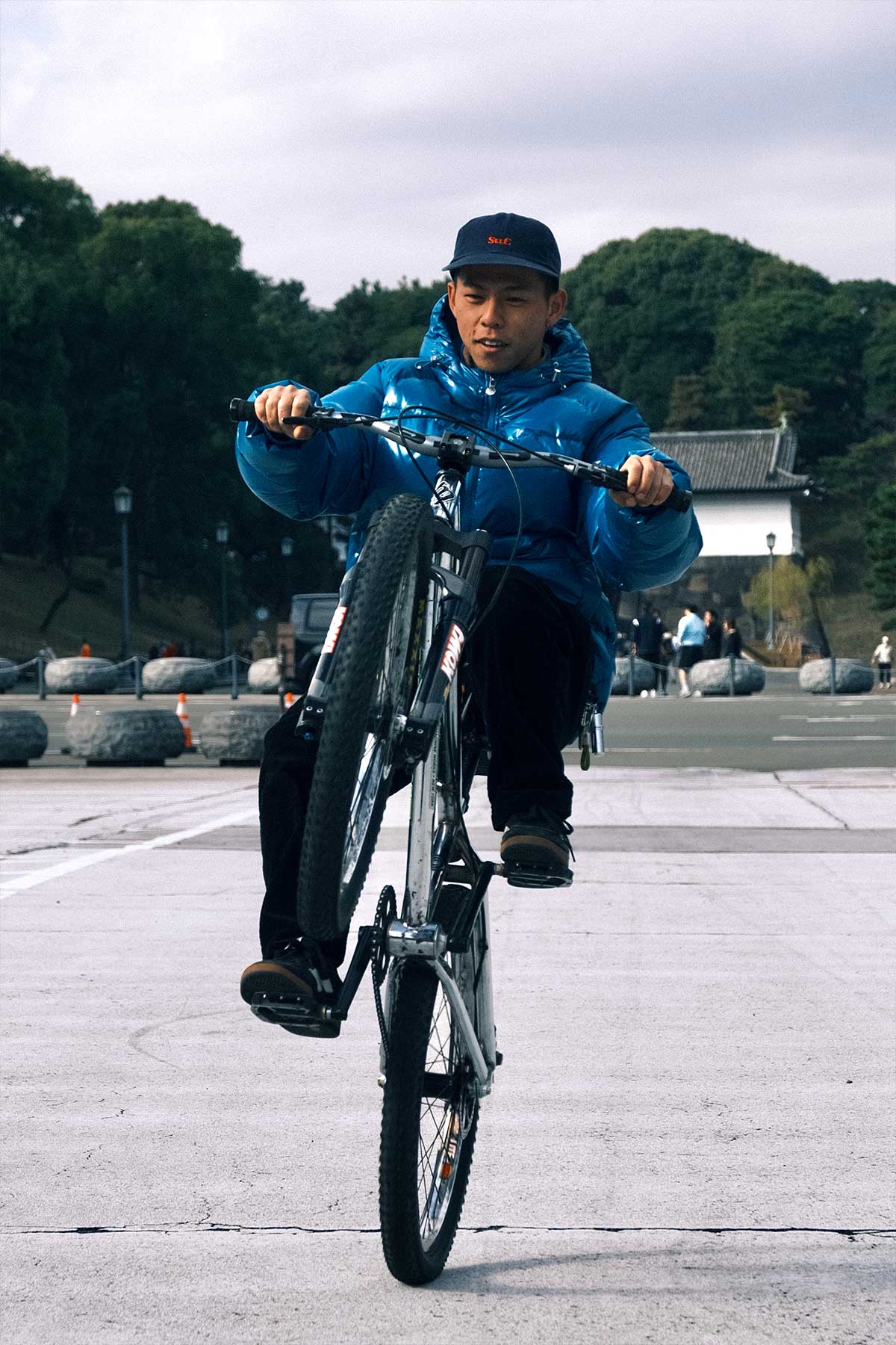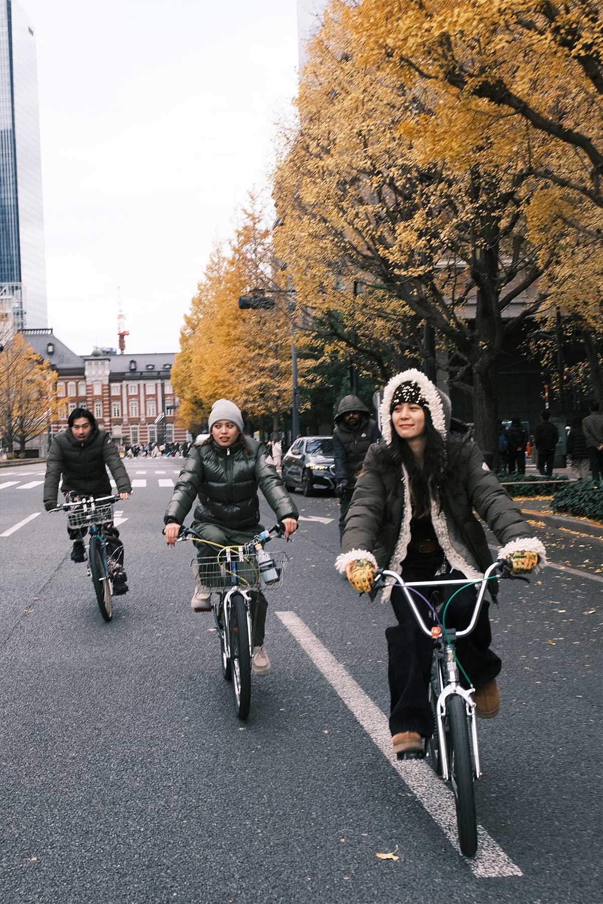 当日は、ロードバイク、マウンテンバイク、BMX など多彩なスタイルを持つ参加者が、PYRENEXのアウターを着用し、東京のさまざまなスポットでフォトセッションを実施。