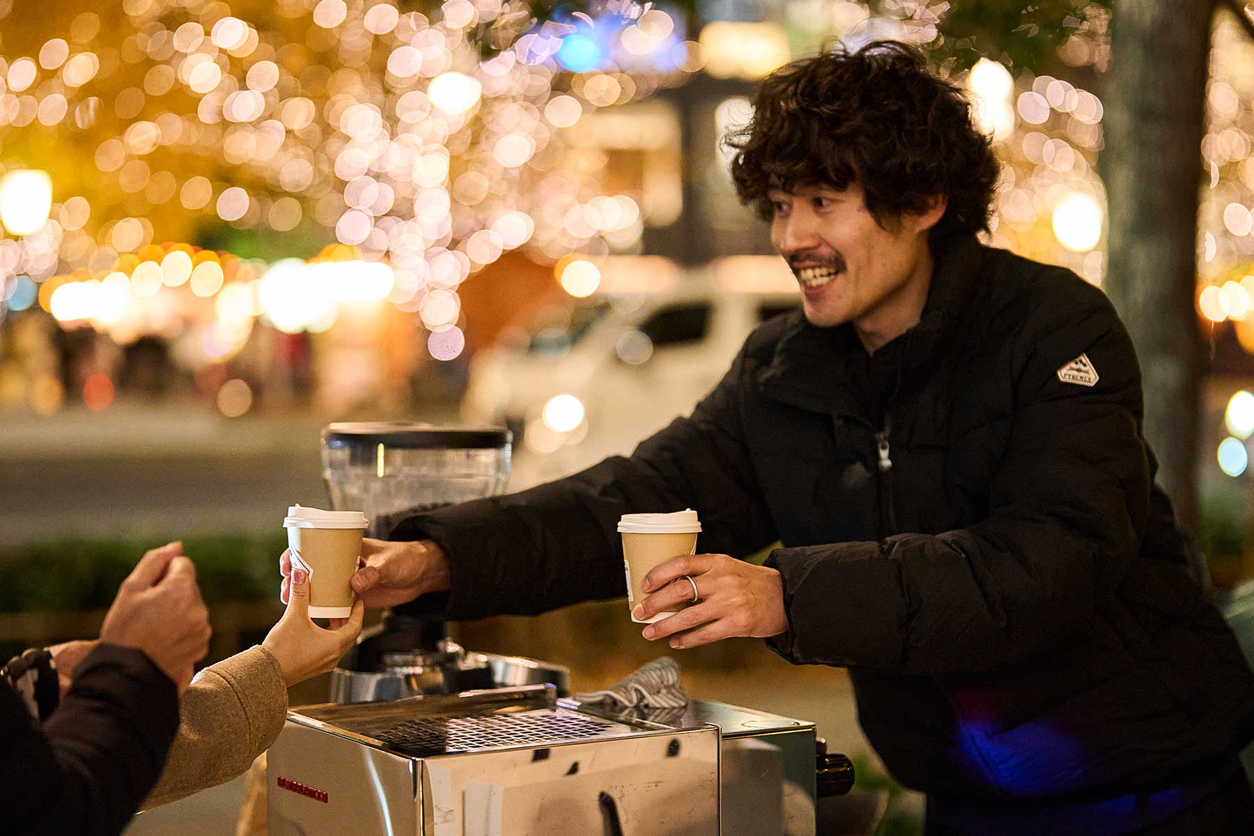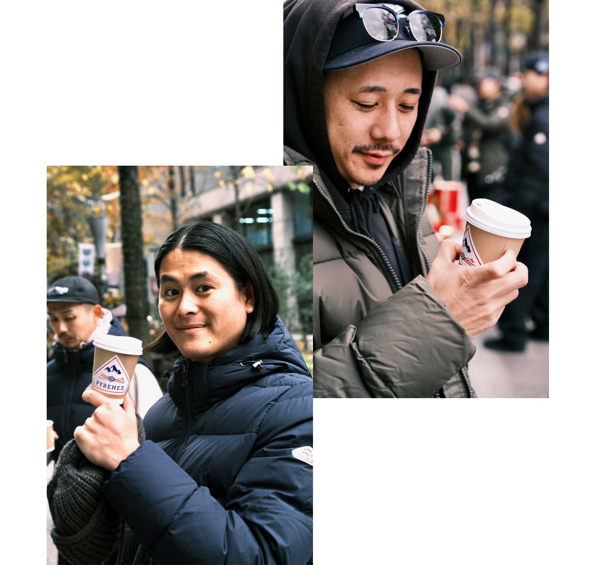 PYRENEX の「本物・本質」を追求するアイデンティティに合わせ、POOL SIDE COFFEE などを手がける Hawker’s の協力のもと、エスプレッソマシンで一杯一杯丁寧に淹れたホットコーヒーとホットラテを、500名のお客様にお配りしました。
