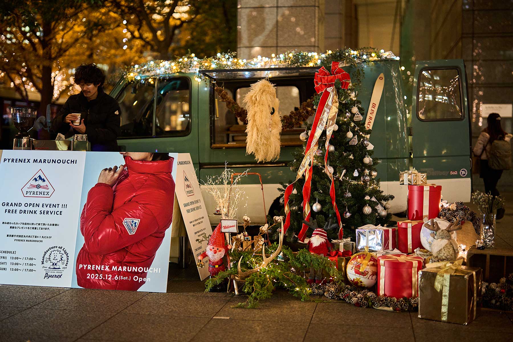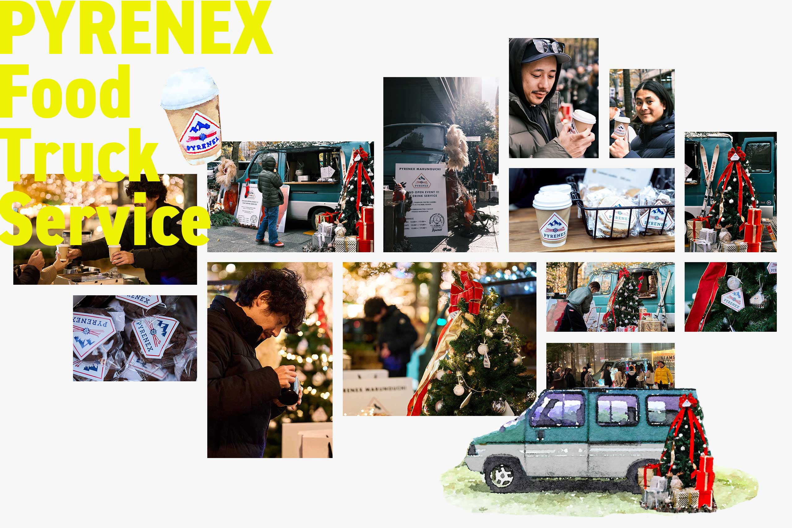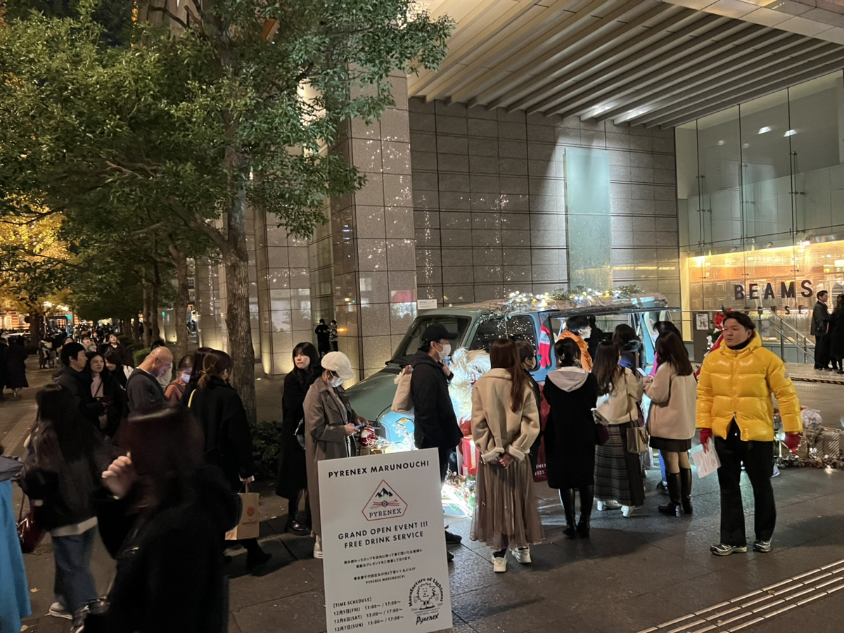 新たに誕生した PYRENEX MARUNOUCHI のグランドオープンを記念し、丸ビル前にて、12月5日・6日・7日の3日間、Food Truck による無料コーヒーサービスのプロモーションを開催いたしました。